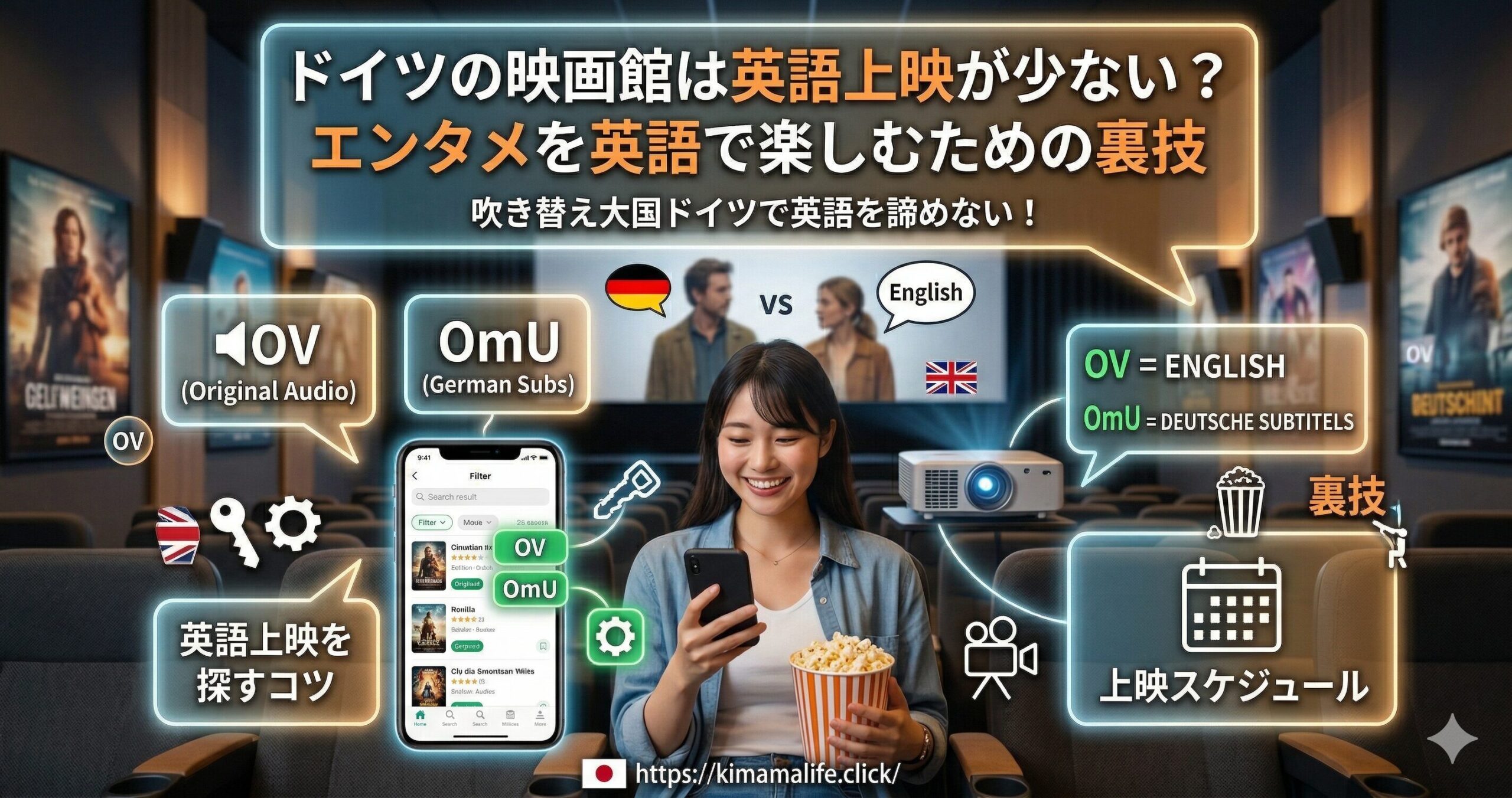 言葉の壁をうまく乗り越える知識を持っていれば、ドイツでの生活はさらに豊かで楽しいものになるはずです。ぜひ今回ご紹介した「OV」や「OmU」といったキーワードを活用して、休日の映画鑑賞を楽しんでみてください。