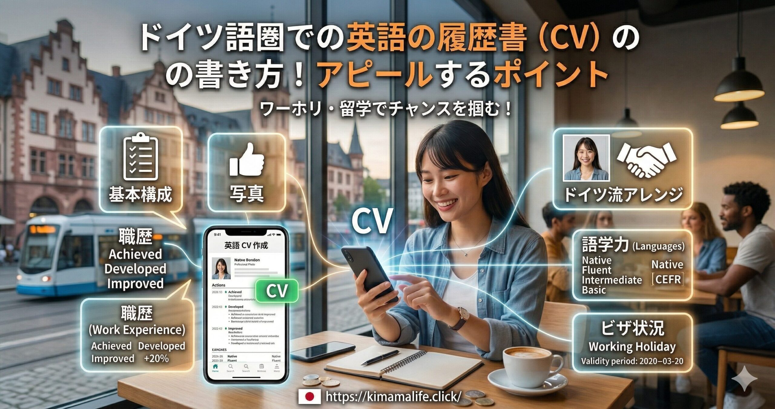 ドイツでの仕事探しに向けて、英語の履歴書(CV)の準備にお悩みのあなたへ。ドイツ語圏でも、外資系やスタートアップを中心に英語の履歴書が歓迎される機会が増えている傾向にあります。本記事では、私のフランクフルトでのワーホリ経験も交えながら、現地の担当者に響く英語CVの書き方と効果的なアピールポイントについてご紹介します。