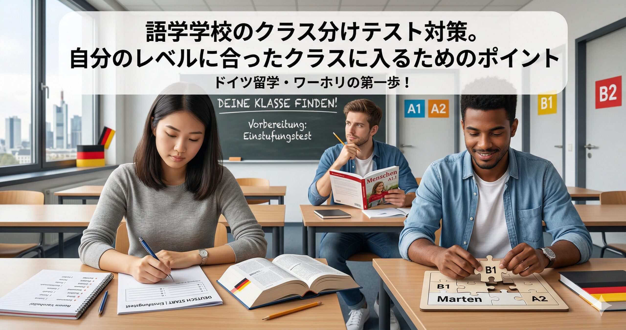 この記事では、これからドイツの語学学校に通うあなたに向けて、クラス分けテストで自分の本当のレベルを正しく判定してもらい、最適なクラスに入るための具体的なポイントを詳しく解説します。