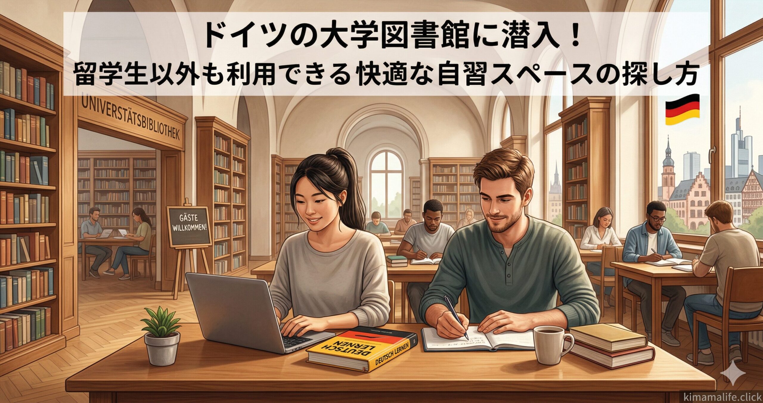 ドイツに滞在し始めたばかりの頃、勉強場所としてまず思い浮かぶのはカフェや語学学校の空き教室かもしれません。しかし、カフェは長時間の滞在が難しかったり、周囲の話し声が気になったりすることがあります。そこで強くおすすめしたいのが、現地の大学図書館を活用するという選択肢です。