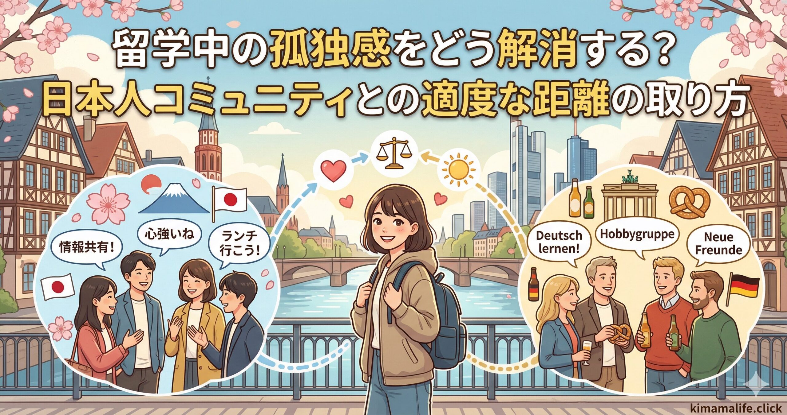 ドイツへの留学やワーキングホリデー。期待に胸を膨らませて渡航したものの、言葉の壁や文化の違いから、ふと強い孤独感に襲われる瞬間があるかもしれません。私自身も2003年秋からフランクフルトで生活を始めた当初、誰も知り合いがいない環境で心細さを感じた経験があります。今回は、異国での孤独感をどう乗り越え、現地の日本人コミュニティとどのように心地よい距離を保つべきか、そのヒントをご紹介します。