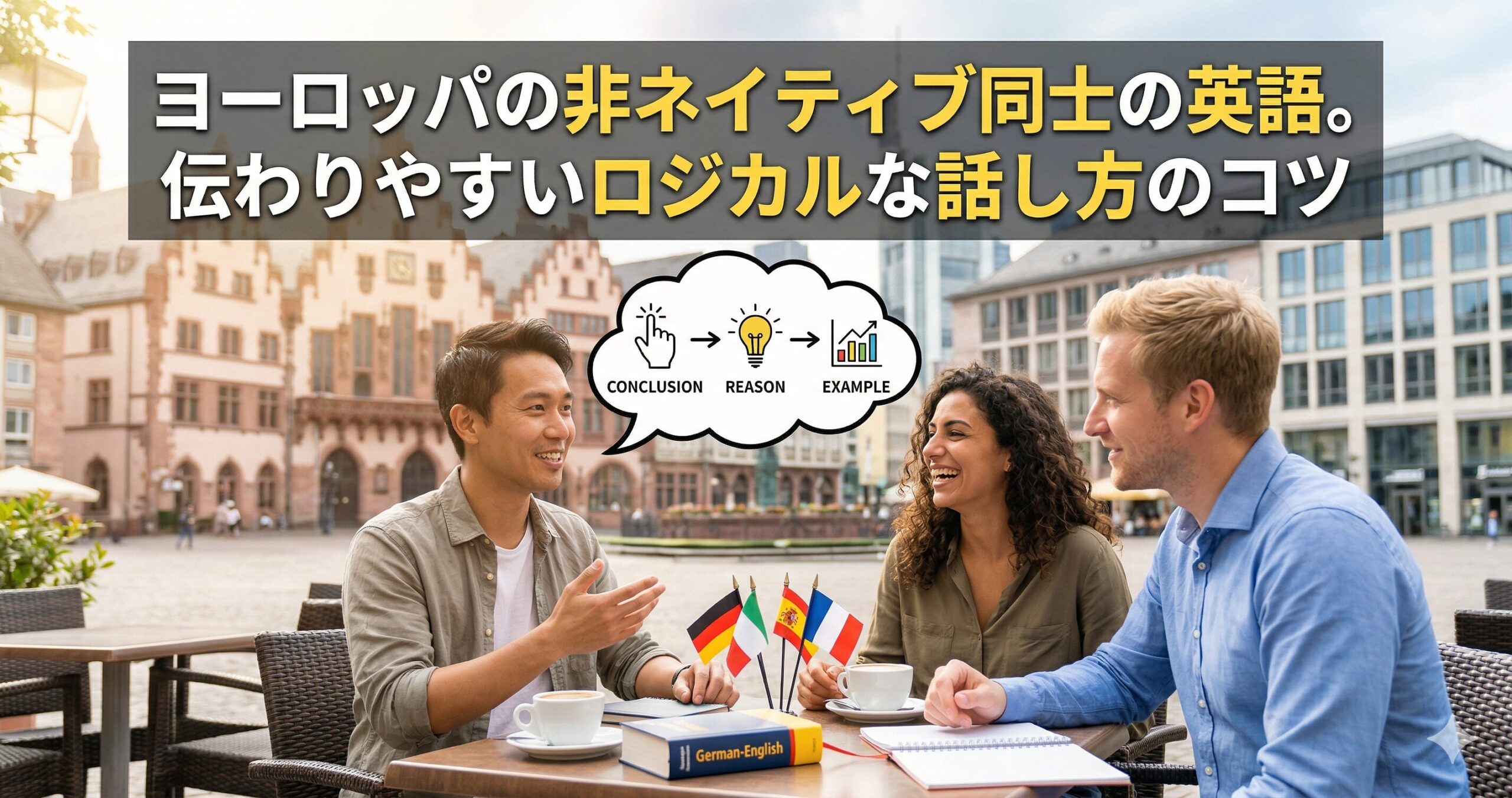 ヨーロッパの非ネイティブ環境で英語を話す際は、完璧な発音や複雑なイディオムを追求するよりも、シンプルでロジカルな伝え方を意識することが何より大切です。中学レベルの基礎的な単語を使い、結論から理由へと順序立てて話すことで、相手の国籍を問わずあなたの意図は確実に伝わり、スムーズな人間関係が築けるというメリットがあります。フランクフルトでの多国籍な人々との交流を通して、ぼく自身、つたない英語であっても堂々と自分の意見を簡潔に伝える姿勢がいかに重要かを学びました。これからヨーロッパへ渡るあなたも、ネイティブのように話さなければというプレッシャーを手放し、まずは結論から話すクセをつけてみてください。恐れずに実践を重ねて、言葉の壁を越えて世界中の人と深く繋がる喜びを存分に味わってください!