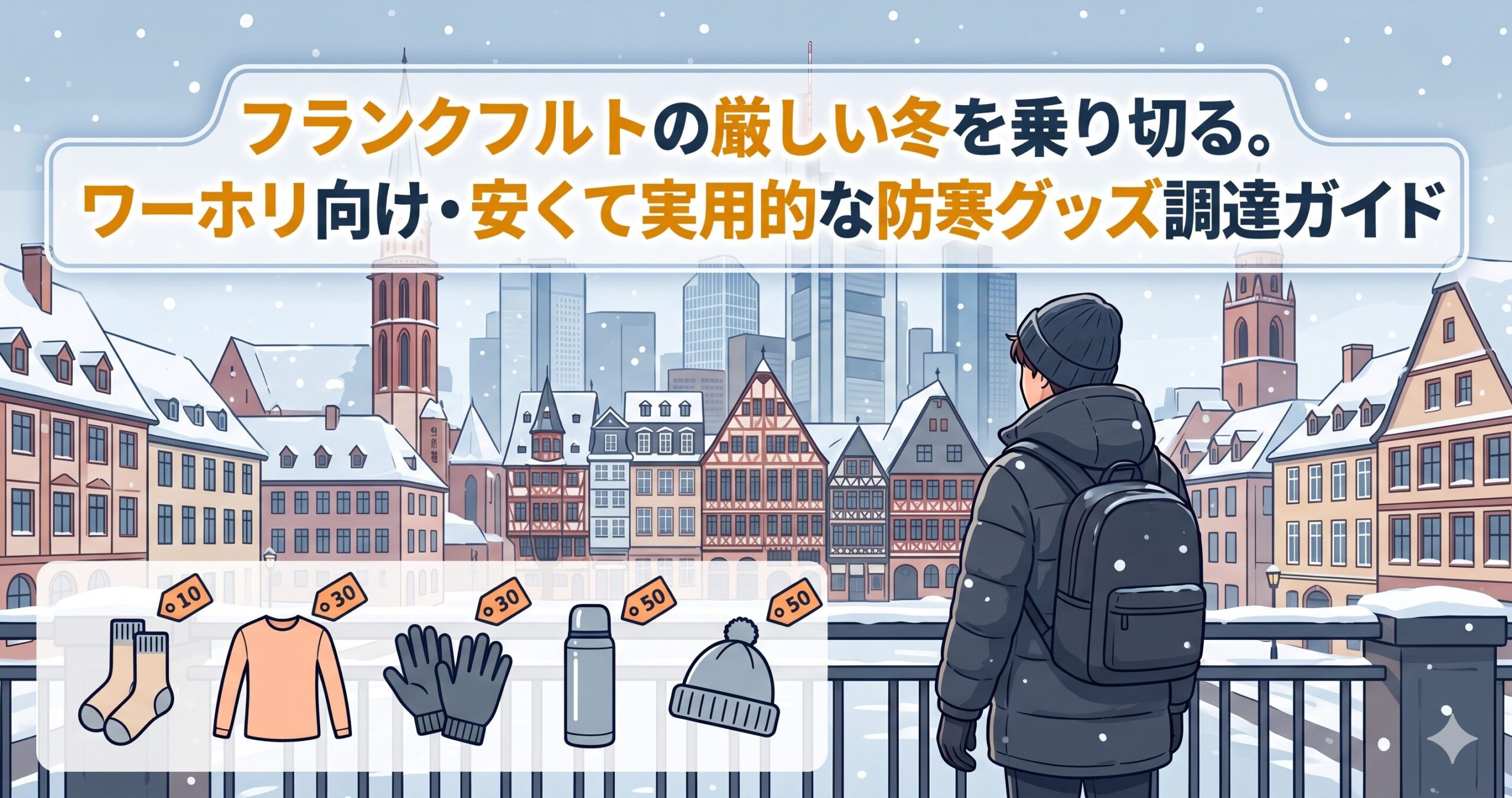 フランクフルトでのワーキングホリデーに向けて準備を進める中で、マイン川から吹き付ける冷たい風と、現地の厳しい冬の寒さに不安を感じていませんか。分厚いコートやセーターを日本から大量に持ち込もうとすると、すぐにスーツケースの容量オーバーや重量オーバーになってしまいます。かといって、現地で高価なブランド物の防寒具ばかり買っていては、限られたワーホリ資金があっという間に底をついてしまうでしょう。そこで今回は、フランクフルトの長く冷え込む冬を、予算を抑えながらも快適に乗り切るための実用的な防寒グッズ調達法を詳しく解説します。限られた予算と荷物で賢く冬支度を整えましょう。